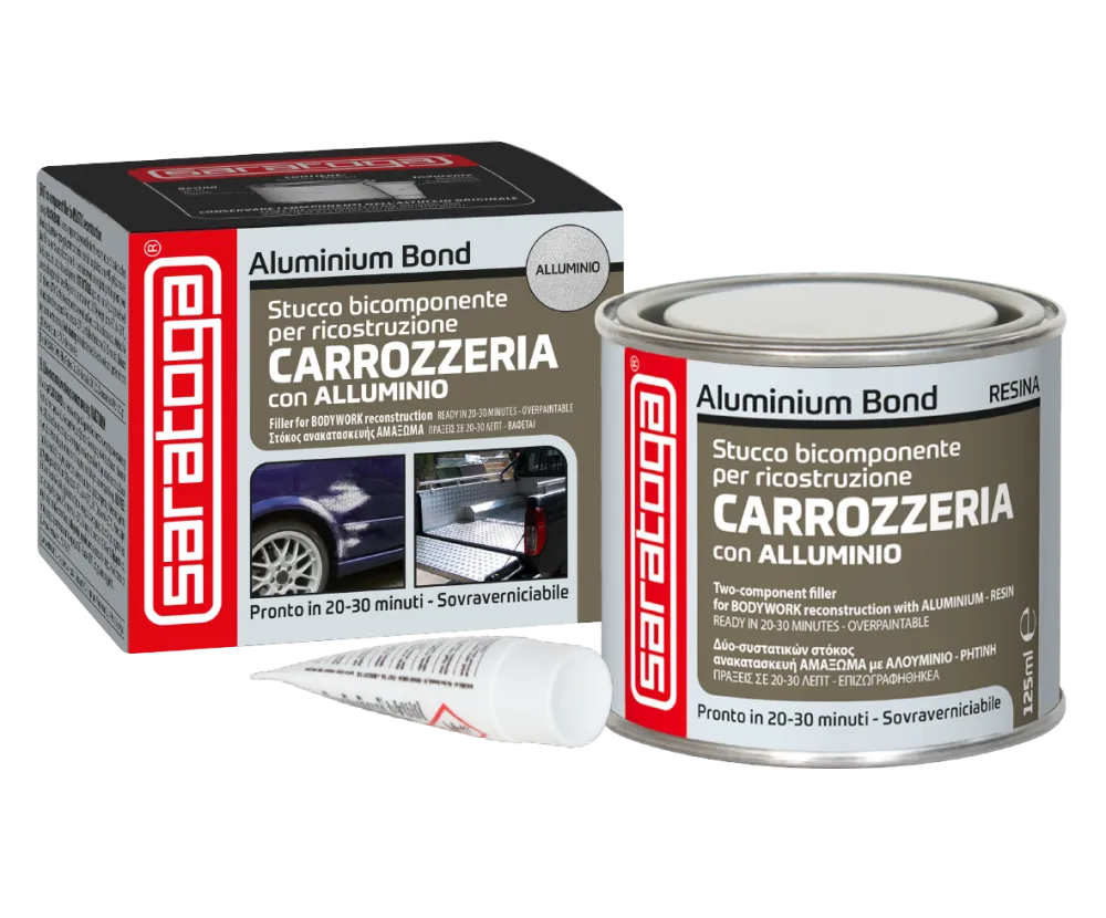 Το Saratoga Aluminum Bond είναι ένα στόκο δύο συστατικών από πολυεστέρα με πάστα αλουμινίου. Στεγνώνει γρήγορα και διατηρεί καλή ελαστικότητα με την πάροδο του χρόνου.