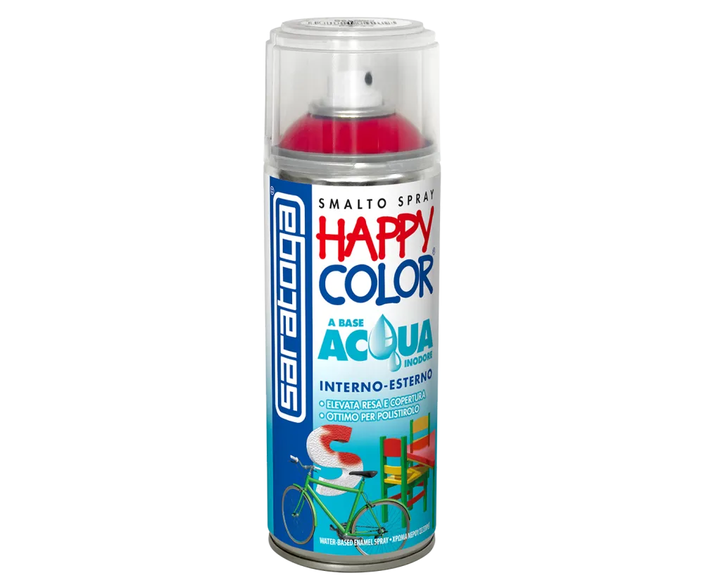 Το HappyColor® ACQUA είναι ένα ακρυλικό χρώµα νερού για εσωτερικούς και εξωτερικούς χώρους, υψηλής ποιότητας. Γυαλάδα, υψηλή ικανότητα κάλυψης και µεγάλη σταθερότητα, το κάνουν κατάλληλο για ξύλο, µέταλλα, πέτρα, κεραµικά, γυαλί, φελιζόλ, χαρτόνι, υφάσµατα και πολλά είδη πλαστικών. Το HappyColor® ACQUA µπορεί να χρησιµοποιηθεί και για το βάψιµο παιχνιδιών καθώς συµµορφώνεται µε τον κανονισµό DIN EN 71-3. Το HappyColor® ACQUA στεγνώνει γρήγορα (η σκόνη δεν κολλάει επάνω του µετά από 20-25 λεπτά), έχει µεγάλη διάρκεια, είναι ανθεκτικό, ελαστικό, δεν κιτρινίζει, έχει υψηλή αντοχή στο φώς και δεν τρέχει. Είναι ουσιαστικά άοσµο και έχει περιορισµένη εκνέφωση στον ψεκασµό και ένα κώνο χρωµατισµού εξαιρετικά οµοιογενή.