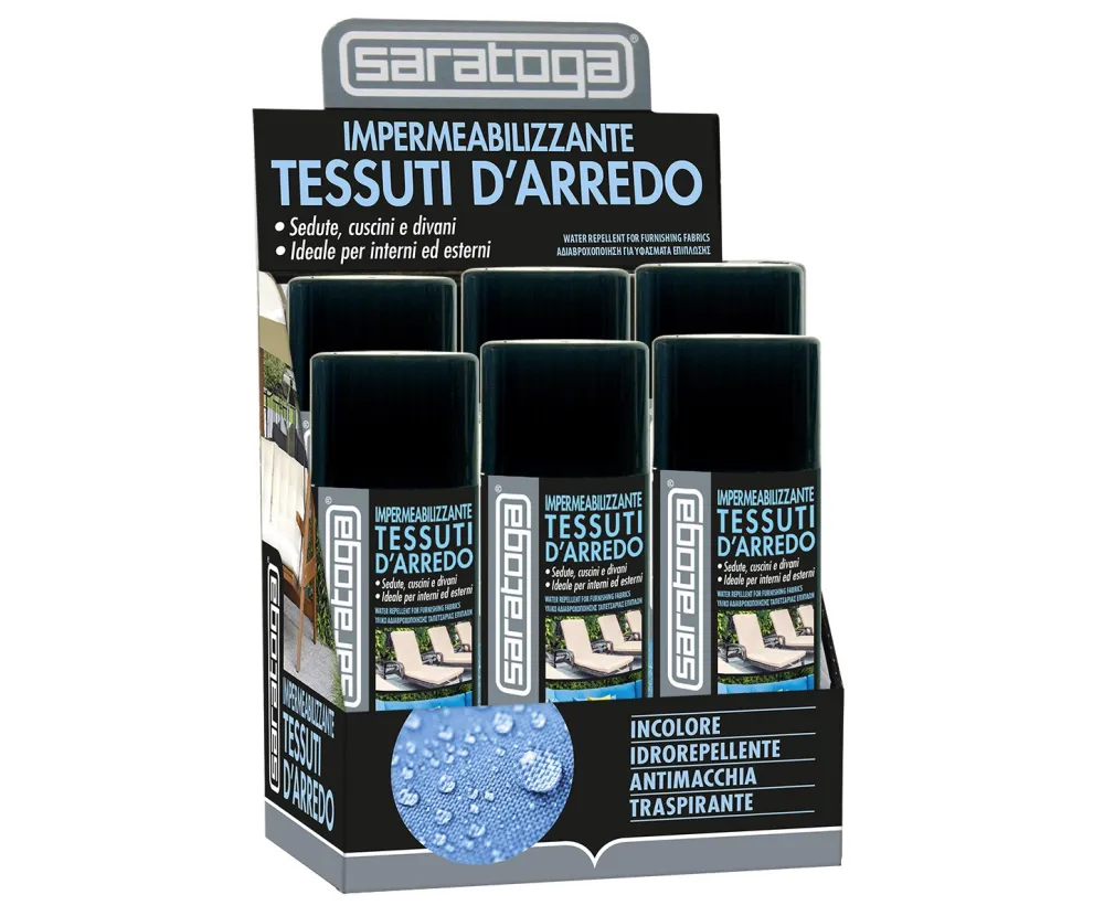 Ideal for upholstered furniture, chairs, outdoor furniture, cushions, upholstered furniture, sofas, armchairs, deckchairs, car seats, seats in general, car and camper interior fabrics, sportswear. It waterproofs against liquids such as water and is an effective protective agent against small stains from oil, sauces, coffee, tea, fruit juices, wine, blood, creams, chocolate, etc.