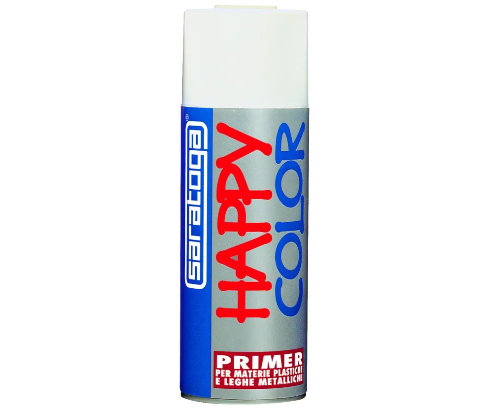 Happy Color PRIMER is a transparent undercoating to be applied before normal varnishing to assure the perfect adhesion of any enamel spray onto difficult surfaces such as plastics, metallic alloys and metals in general, which otherwise would not be varnishable. Happy Color PRIMER dries to the touch in 15 minutes and dries thoroughly in 45 minutes.
