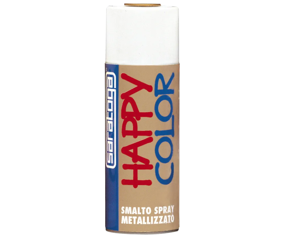 Happy Color METALLIZED is the bright enamel for interiors and exteriors that beautifies and brightens the most diverse surfaces and objects: frames, friezes, furniture, wrought-iron, vases, masks, cups, medals, dried flowers, Christmas ornaments, knick-knacks and others. It dries to the touch in 15 minutes and dries fully in 45 minutes. It is suitable for: wood surfaces, metal, glass, ceramic, terracotta, masonite, plastering, plastic, etc. Instructions: carefully clean the surface of grease, dust, water, etc. • Shake the spray can energetically for a minute, upside-down. • Spray at a distance of 20/30 cm with a slow and constant horizotal movement; after about a minute, pass over the area with a vertical movement. • To avoid dripping it is preferable to spray in several thin coats. Varnish Removal: with Acetone or a Niter Diluent (thinner). Comes with a self-cleaning valve.