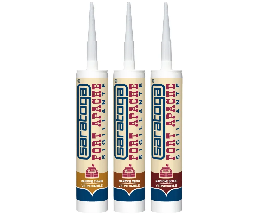 SIGILLANTE FORT APACHE viene utilizzato per sigillare parti in legno ed intonaco, zoccolini, porte e finestre, sottotetti, pareti prefabbricate, mobili e perlinature