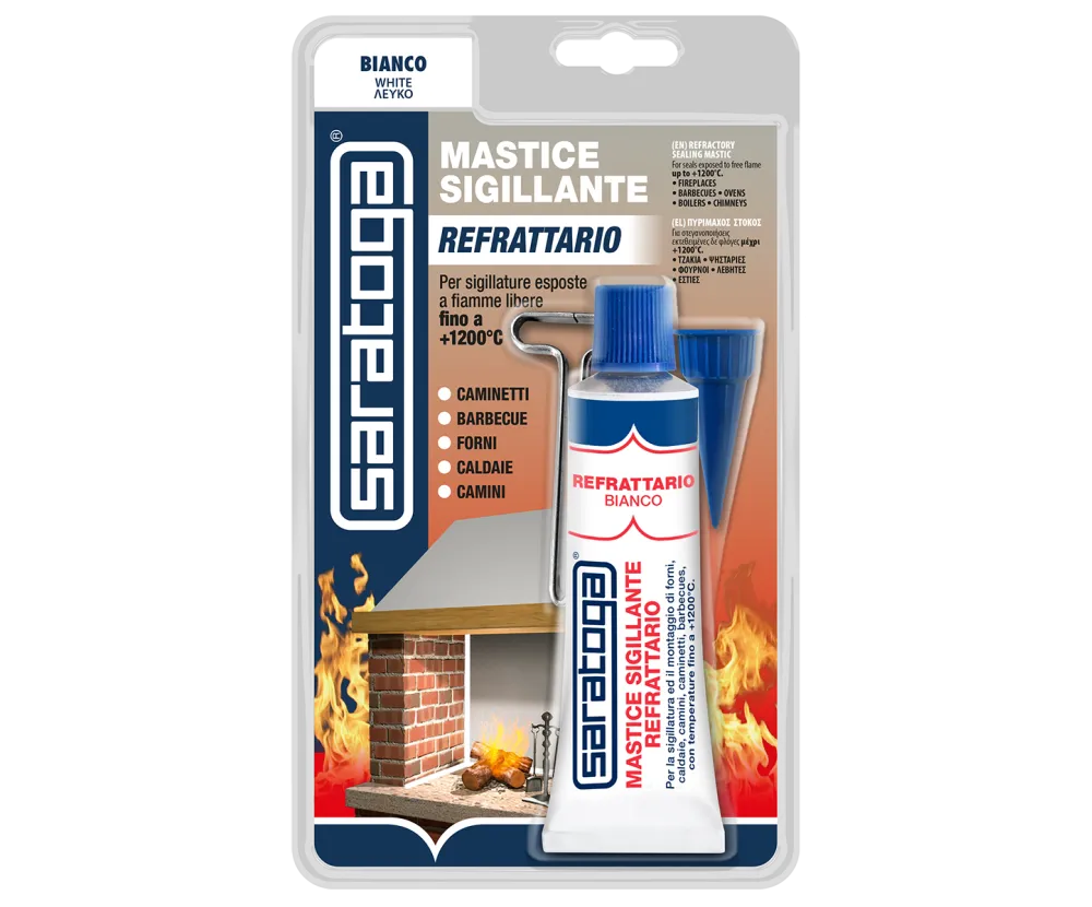 Caminetti, stufe, forni e caldaie, per applicazioni su mattoni, calcestruzzo e metalli, per sigillare giunti e riparare fessure e crepe anche in presenza di fiamme libere.